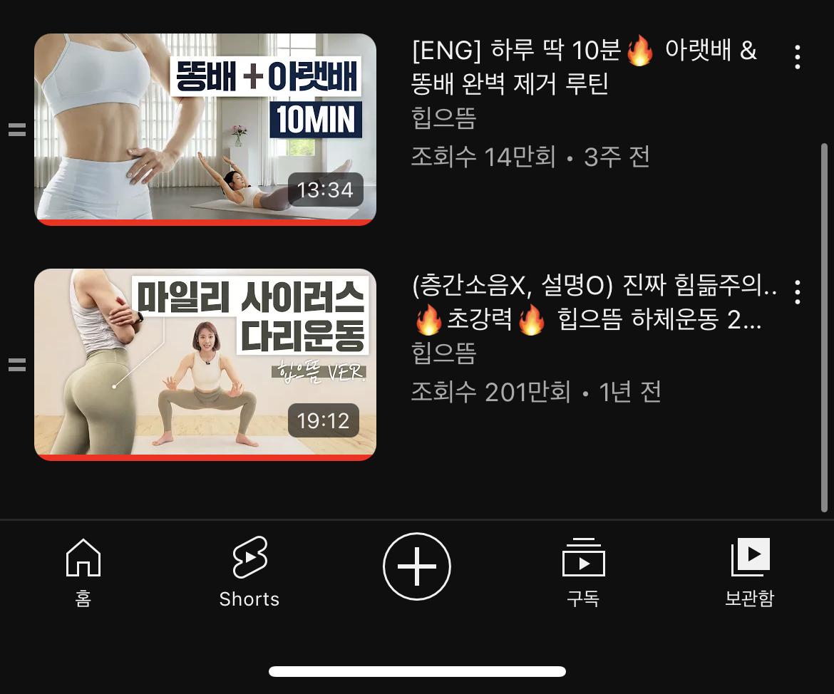 코어 운동은 유명 유튜버들의 홈트를 많이 따라했는데