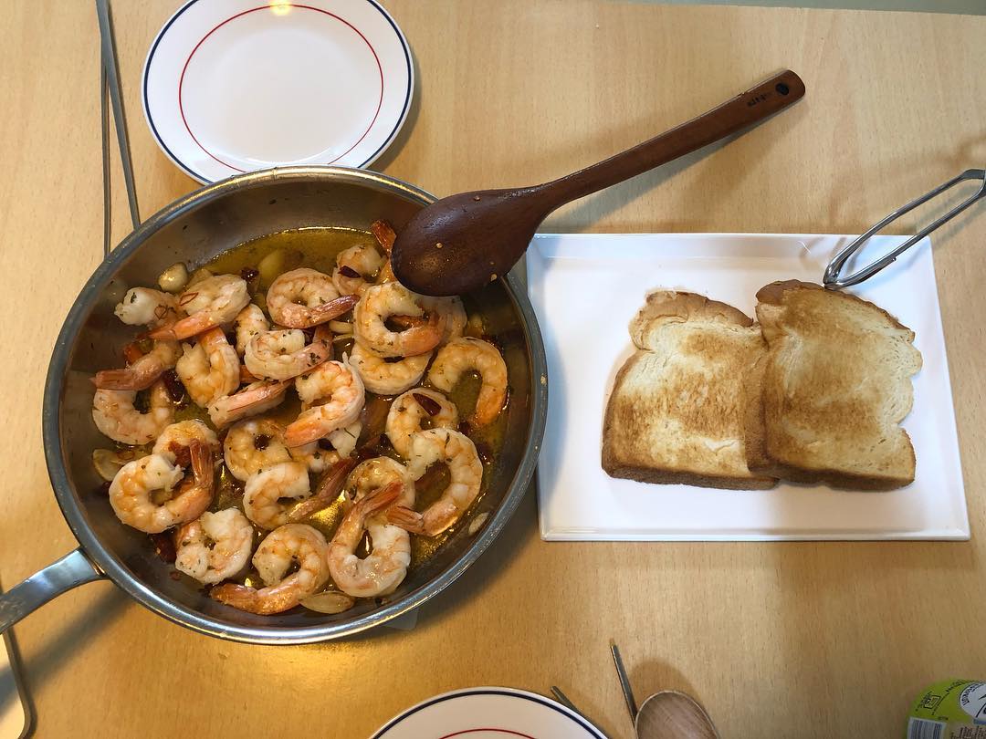 새우뿜뿜 감바스에 촉촉바삭하게 구워진 식빵으로